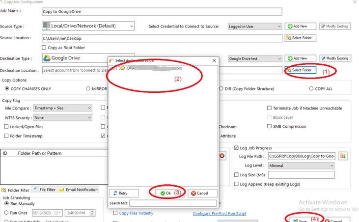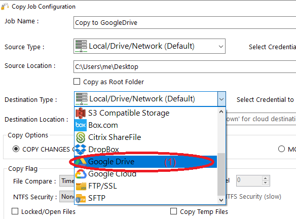 4) From Destination type , choose “Google Drive” (1)