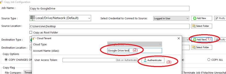 The video above shows how to create a job to copy files to Google Drive.