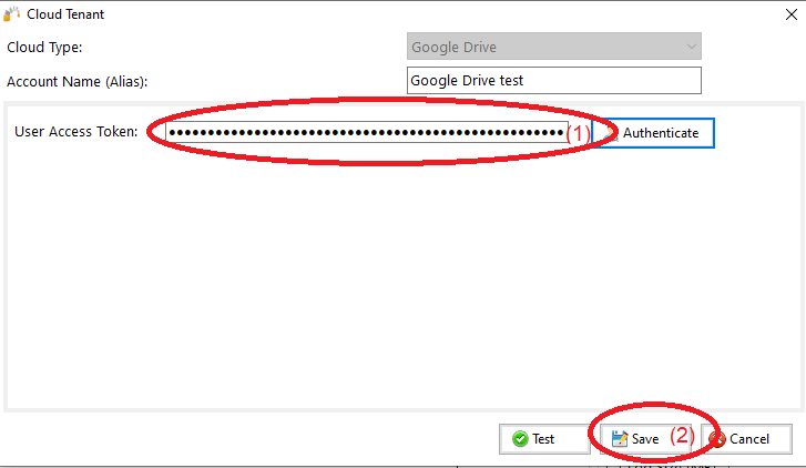 9) User Access Token will be auto fill (1) , just click “Save” (2)